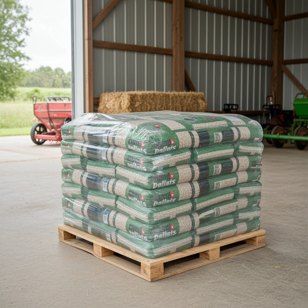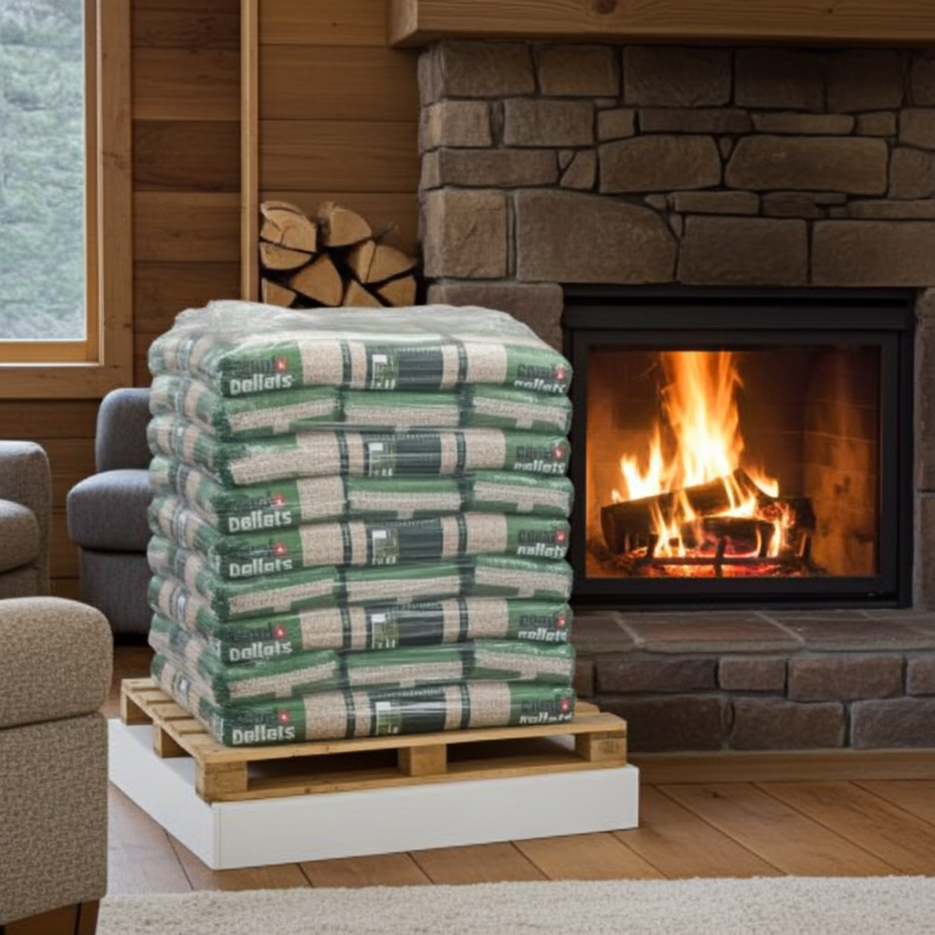 Elke pallet bevat 65 zakken van 15 kg, ofwel 975 kg pellets die zorgvuldig zijn verpakt om hun zuiverheid en stabiliteit te garanderen. De prijs is inclusief thuisbezorging met een praktische en efficiënte terreinpalletwagen.